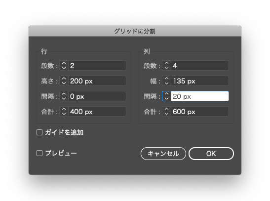 イラレ(イラストレーター/Adobe Illustrator)で、表組みを作る時やオブジェクトを等分したいときなどに便利な往年の機能、段組み設定。